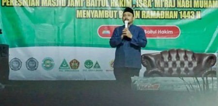 Kontributor LPPL Suara Ngawi Jatim INDONESIAPERSADA.ID I NGAWI - Bupati Ngawi Ony Anwar Harsono hadiri peresmian Masjid Jami’ Baitul Hakim dan pengajian peringatan Isra Miraj 1443 H, Kamis (10/03/22) di Desa