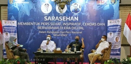 Kontributor LPPL Suara Ngawi Jatim INDONESIAPERSADA.ID I NGAWI - Masih dalam peringatan Hari Pers Nasional (HPN) Tahun 2022 Pemerintah Kabupaten Ngawi bersama PWI Kabupaten Ngawi gelar Sarasehan bertajuk Membentuk Pers