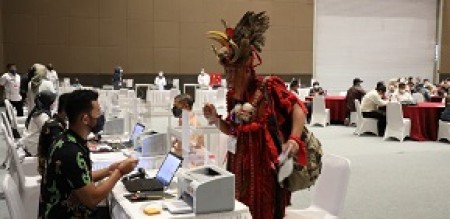 editor : rahadio indonesiapersada.id I Jakarta - Alfred Tenny Franny Sengkey tampil dengan pakaian mencolok di antara barisan peserta tes tertulis dan penulisan makalah calon anggota Komisi Pemilihan Umum (KPU) dan