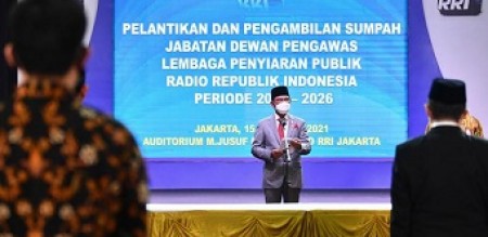 editor : rahadio indonesiapersada.id I jakarta - Menteri Komunikasi dan Informatika Johnny G. Plate melantik lima Dewan Pengawas Lembaga Penyiaran Publik Radio Republik Indonesia Periode 2021-2026. Dalam pelantikan