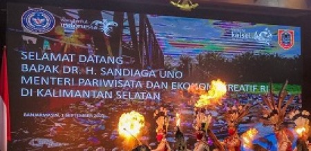 editor : rahadio indonesiapersada.id I Banjarmasin, - Menteri Pariwisata dan Ekonomi Kreatif/Kepala Badan Pariwisata dan Ekonomi Kreatif, Sandiaga Salahuddin Uno, mengawali kunjungannya ke Banjarmasin,
