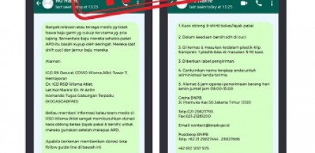 INDONESIAPERSADA.ID I JAKARTA – BNPB memastikan berita yang beredar di jejaring sosial mengenai donasi kaos oblong bekas untuk petugas medis dan relawan Satgas Covid-19 sebagai hoaks atau berita palsu. Berita