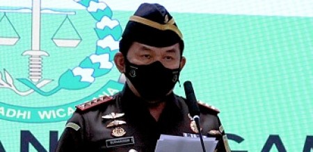 indonesiapersada.id Jakarta - Hari ini, Rabu 14 Juli 2021, Jaksa Agung Republik Indonesia Dr. Burhanuddin, SH. MH. melantik Laksmana Muda (Laksda) TNI Anwar Saadi, SH. sebagai Jaksa Agung Muda Pidana Militer di Menara