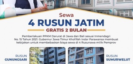 editor : Rahadio indonesiapersada.id I SURABAYA - Gubernur Jawa Timur, Khofifah Indar Parawansa kembali menggratiskan biaya sewa empat Rumah Susun Sewa (Rusunawa) milik Pemprov selama dua bulan kedepan.