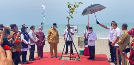 indonesiapersada.id I PARIAMAN – Disela-sela kunjungan kerja di Sumatera Barat, Wakil Presiden (Wapres) Ma’ruf Amin melakukan penanaman pohon di Pantai Kata, Kota Pariaman, Sumatera Barat, Selasa (6/4).