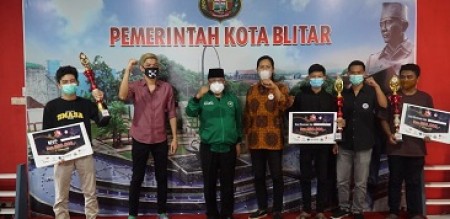 indonesiapersada.id, kota Blitar - Wali Kota Blitar menyerahkan penghargaan kepada seluruh pemenang ajang Local Battle E-Sprot Series 1 Kota Blitar di Ruang Integrated System Center (ISC) Dinas Kominfo dan Statistik