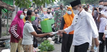 indonesiapersada.id I KABUPATEN NGAWI - Bupati Ngawi, Budi Sulistyono bersama Forkopimda Ngawi dan sejumlah pejabat lingkup Pemerintah Kabupaten Ngawi melakukan sidak penerapan protokol kesehatan di Pasar Desa
