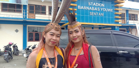 editor : Rahadio persadaindonesia.id, Sentani - Mengenakan pakaian daerah Dayak Deah , peserta cantik dari kalimantan selatan tepatnya dari desa pangelak, tampak anggun dengan pakaian hasil kreasi