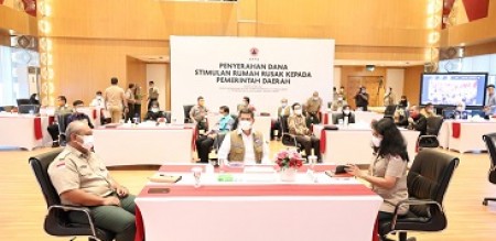 Editor: Rita Zoelkarnaen indonesiapersada.id I Jakarta, Badan Nasional Penanggulangan Bencana (BNPB) menyerahkan bantuan berupa Dana Siap Pakai (DSP) ke Pemerintah Daerah di Ruang Sutopo Purwo Nugroho, Graha